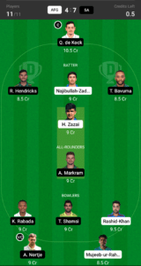 Q.de Kock (C), R.Hendricks, T.Bavuma, Najibullah-Zadran, H.Zazai, A.Markram, K.Rabada, T.Shamsi, A.Nortje (VC), Rashid-Khan, Mujeeb-ur-Rahman
