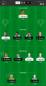 Martinez, Digne, Cancelo, Dias, Gomez, Luiz, Buendia, De Bruyne (VC), Foden, Haaland (C), Alvarez