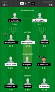 Mohammed Farook Shereef (8.5 Cr) should be able to make the most of his form in this match as he will be coming here for their first match which can allow him to make the most of the pitch as our prime choice.