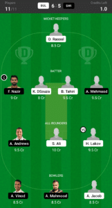 O.Rasool (wk), S.Hussain, B.Tahiri, K DSouza, A.De-Silva, S.Ali, H.Lakov, P.Mishra, A.Jacob, R.Patel, A.Ahmadhel