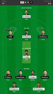 Conway, Gaikwad, Gill (C), Sudharsan, Jadeja, Chahar, Pathirana, Theekshana, Shami, Rashid-Khan (VC), Sharma
