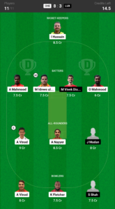I.Hussain (wk), A.Mahmood, M.Idrees ul Haque, O.Mahmood, A.Vinod, A.Nayyer, J.Sinh, A.Vinod, K.Fletcher, N.Kumar, M.Ahmadzai