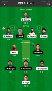 Conway, Rahane, Dube, Gaikwad (C), Brook, Ali, Markram (VC), Deshpande, Singh, Markande, Natarajan