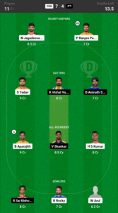 T.Raheja (wk), S-Ganesh, K.Vishal Vaidhya, B.Anirudh Sita Ram, N.Chaturved, V.Shankar, P.Bhuvaneswaran, R.Vivek, R.Sai Kishore, S.Manigandan
