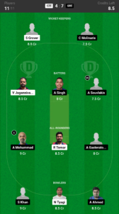 Grover, Molinaris, Jagannivasan, Singh, Souvlakis (VC), Tomar, Gasteratos, Mohammad (C), Tyagi, Khan, Ahmed