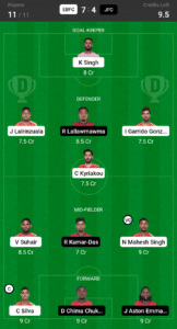 Jerry Lalrinzuala (7.5 Cr) was able to create 26 passes along with 2 tackles and 2 interceptions followed up with 1 clean sheet in the last match that can allow him to showcase a similar form in this match.