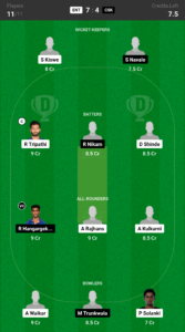 S.Kiswe (wk), S.Nagawade, R.Tripathi, D.Shinde, H.Khadiwale, A.Rajhans, A.Kulkarni, A.Palkar, A.Waikar, O.Akhade, P.Solanki
