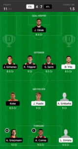 J.Oblak (8.5 Cr) has been the most consistent player on this team and his skills have been crucial for the team and he should be able to pull a clean sheet in this match.