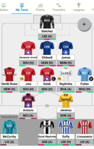 Sanchez (GK), James, Alexander-Arnold, Chilwell, Jota, Salah (C), Foden (VC), Raphinha, Smith Rowe, Jimenez, Antonio