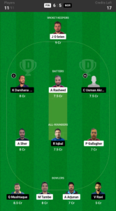 Obrien, Rasheed, Darshana Abeyrathna (C), Usman Akram (VC), Sher, Gallagher, Iqbal, Tambe, Arjunan, Ravi, Mushtaque