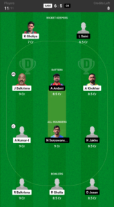 Ravi Jakhu (8.5 Cr).is in the best form of his life as witnessed in all 6 matches of the previous tournament after scoring 150 runs and 3 wickets which makes him our prime choice for this encounter.