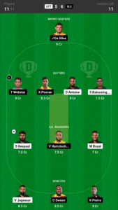 J.Da Silva (wk), T.WEbster, K.Pooran, J.Ramdoo, V.Harrylochan, S.Balliram, S.McCoon, D.Swean, K.Pierre, B.Charles, P.Williams