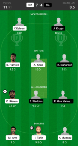 Y.Kaleem, J.Kruger, A.Khan, B.Hameed, K.Maharoof, C.Rizwan (C), B.Staddon, R.Gow Kleinschmidt, M.Amir, I.Tahir (VC), A.Mumtaz