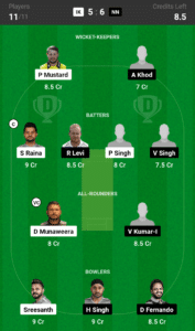 P.Mustard (wk), S.Raina, P.Singh, S.Hooda, J.Kumar, D.Munaweera, J.Giri, R.Tyagi, Sreesanth, I.Pandey, K.Rana
