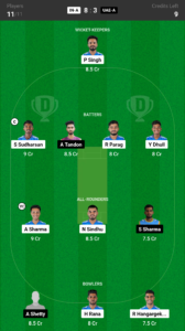 P.Singh (wk), S.Sudharsan, Y.Dhull, R.Parag, N.Wadhera, A.Sharma, N.Sindhu, N.Kumar Reddy, H.Rana, R.Hangargekar, A.Singh