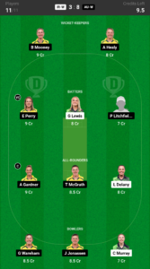 Ashleigh Gardner (9.0 Cr) picked 8 wickets in her last ODI series along with a decent batting performance that should allow her to continue with her improving form in this crucial encounter.