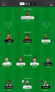 ITA vs ENG Dream11 Team Prediction, Fantasy Football Tips