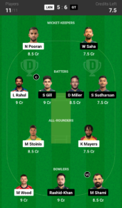 Pooran, Saha, KL Rahul, Gill (C), Miller, Sudharsan, Stoinis, Mayers, Wood, Rashid-Khan, Shami (VC)