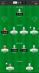 C.Metcalfe (9.5 Cr) scored 5 goals with 3 assists last season with great control over his attacking potential which should be channeled into a brilliant performance for this match.