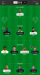 De Gea, Dalot, Alonso, Rudiger (VC), Fred, Fernandes, Jorginho, Mount (C), Ronaldo, Pulisic, Havertz