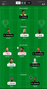 A.Areola, A.Telles, E.Bailly, R.Fredericks, J.Sancho, J.Lingard (VC), J.Mata, A.Yarmolenko, Benrahma, A.Martial, M.Antonio (C)