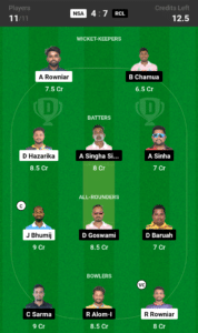 B.Chamua (wk), A.Singha Sinha-Roy, A.Sinha, P.Dutta, D.Baruah, D.Goswami, P.Bora, C.Sarma, R.Alom-I, A.Deka, M.Dutta