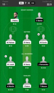 Nino Henry (8.0 Cr) leans more towards his bowling skills as witnessed in the last match which earned him 4 wickets at a controlled economy rate of 5.50 which makes him a crucial contributor for this game.