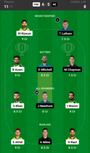 Rizwan, Latham (C), Azam, Mitchell, Chapman, Khan, Wasim, Neesham (VC), Afridi, Rauf, Milne