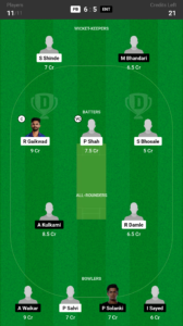 S.Shinde (wk), R.Gaikwad, H.Sanghvi, P.Shah, S.Bhosale, Y.Kshirsagar, V.Chougalle, R.Damle, P.Salvi, S.Kothari, A.Daware