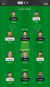 Singh, Kishan, Dhawan, Sharma, Yadav (VC), Curran, Raza, Green (VC), Singh, Chawla, Archer