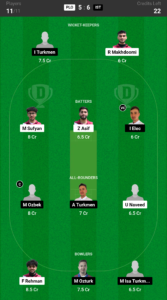 Makhdoomi, Turkmen, Asif, Sufyan, Elec (VC), Naveed, Turkmen, Ozbek (C), Rehman, Ozturk, Isa Turkmen