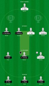 Livin Varghese (8.5 cr) will be a must-pick option from the batting section. He scored 3 runs in the last match against SDC.