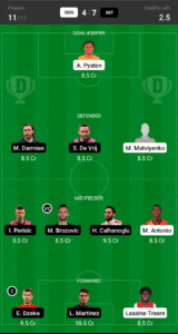 Yatov, Darmian, D Vrij, Matviyenko, M.Antonio, H.Calhanoglu, Brozovic (VC), Perisic, Lassina-Traore, L.Martinez, E.Dzeko (C)