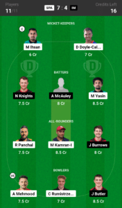 Ihsan (C), Doyle-Calle, Yasin, McAuley, Knights, Panchal, Kamran-I, Burrows, Mehmood (VC), Rumistrzewicz, Butler