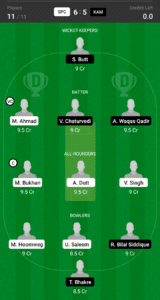 S.Butt, V.Chaturvedi, A.Waqas Qadir, M.Ahmad (VC), A.Dutt, M.Bukhari (C), V.Singh, M.Hoornwg, U.Saleem, R.Bilal Siddique, T.Bhakre