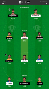 Baba Aparajith (9.0 Cr) was also among the responsible players in the team and was able to score 203 runs at a strike rate of 187.27 along with 8 wickets in the last series which makes him our prime choice for this encounter.
