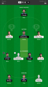 Soulat, Dsouza, Vinu Varghese, Raikundalia, Krishnakumar (C), Jacob, Patel (VC), Saini, Rasool, Khan, Khan