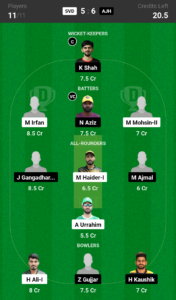 K.Shah (wk), R.Chopra, N.Aziz, F.Baig, J.Gangadharan, M.Ajmal, M.Mani, H.Kaushik, Z.Gujjar, A.Sangwan, S.Ahmad