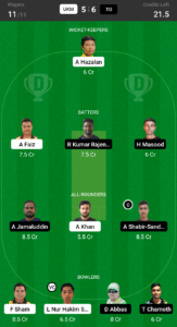 Lokman Nur Hakim Sahar (6.5 Cr) started off his campaign with 3 wickets in the last match cementing his ambitions for this series which makes him our prime choice for this encounter.
