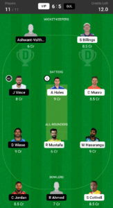 Ashwanth-Valthapa (wk), J.Vince, C.Lynn, S.Hetmyer, G.Merwe Erasmus, D.Wiese, L.Dawson, C.Jordan, R.Ahmed, R.Gleeson, S.Sharma