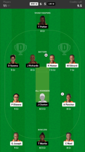 Jenisen Richards (8.0 Cr) is a brilliant talent who was able to make her mark with a total of 178 runs at a strike rate of 81.81 in the last 10 T20 matches which can keep her focused in this contest.