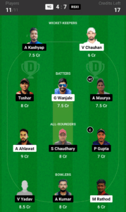 A.Kashyap (wk), Tushar, A.Maurya, V.Kumar, N.Sharma, S.Chaudhary, S.Khan, P.Gupta, V.Yadav, A.Kumar, N.Kumar