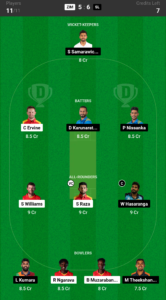Samarawickrama, Ervine, Karunaratne, Nissanka, Williams, Raza (VC), Hasaranga (C), Ngarava, Muzarabani, Kumara, Theekshana