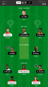 Da Silva, Ervine, Brathwaite, Mayers, Holder (VC), Chase, Masakadza, Evans, Ngarava, Roach, Joseph (C)